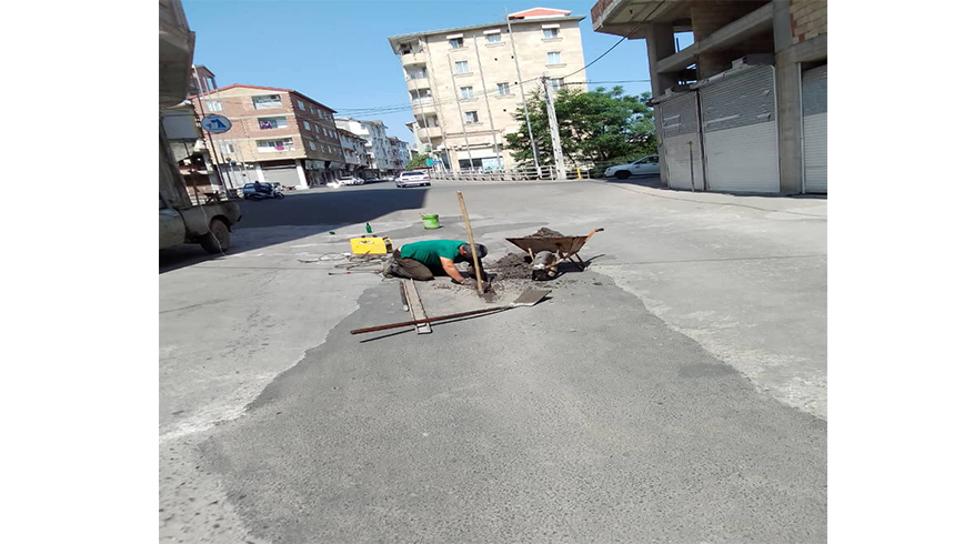 عملیات بازسازی و بهسازی پیاده رو در محل تقاطع خیابان فارابی با شریعتی توسط شهرداری بندر آستارا