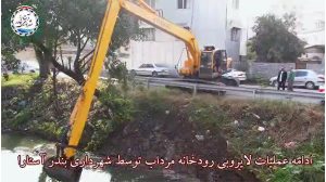 ادامه عملیات لایروبی حاشیه رودخانه مرداب توسط شهرداری بندر آستارا