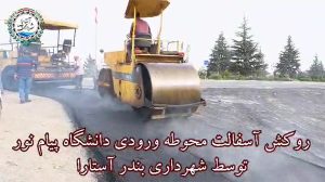 روکش آسفالت محوطه ورودی دانشگاه پیام نور توسط شهرداری بندر آستارا